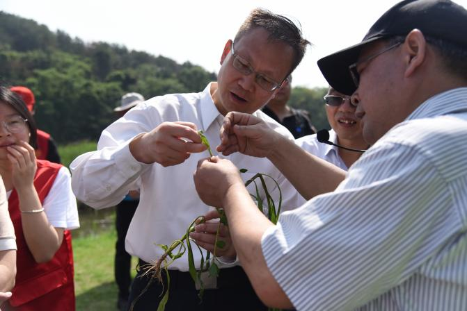 在对节白蜡园旁,英国365上市公司李兆华教授介绍了在藏龙岛国家湿地公园调查到的4种国家保护植物和5种外来入侵物种。李教授以园内的入侵植物加拿大一枝黄花为例,讲解了加拿大一枝黄花的识别方法,并与现场人员进行交流讨论,呼吁群众积极参与生物多样性的保护与外来入侵物种的防治。