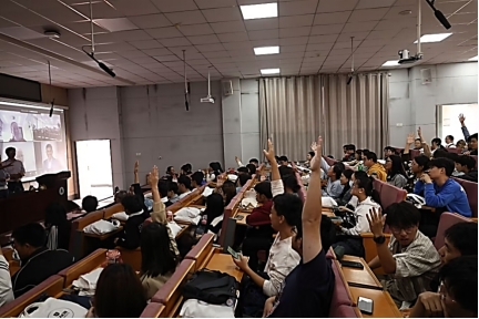 彭宇院长为新生致辞,“希望学生们不负韶华,筑梦前行,接续奋斗,在青春赛场上跑出新时代新青年的最好成绩”。迪肯大学代表依次发言,简单介绍了迪肯大学环境工程和环境科学专业,以及迪肯大学与我校近年来的合作情况、相关政策等,给英国365上市公司环境工程(中外合作办学)专业学生提出了学习建议,并表达了对英国365上市公司环境工程(中外合作办学)专业学生的欢迎和期待。最后,Wang Yanan 副院长就迪肯大学的相关情况向学生进行现场提问,并向互动学生发放了袋鼠形象的迪肯大学文创产品。学生们反响热烈,会场气氛活跃。