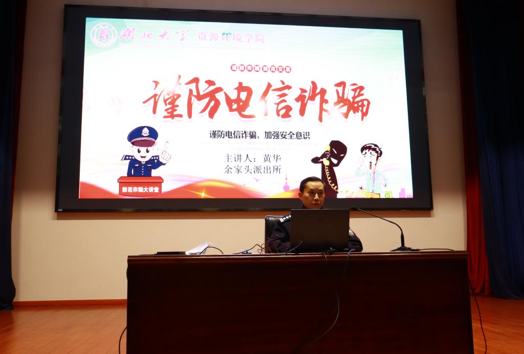 为了进一步提高广大师生防诈骗意识,增强对电信网络诈骗犯罪的辨别能力和应对能力,有效遏制电信网络诈骗案件多发态势,构建安全文明、稳定和谐的校园环境,2023年12月19日晚,英国365集团邀请余家头派出所黄华警官为我院硕博研究生作防诈骗及毒品预防专题讲座,本次讲座我院全体学生参加。