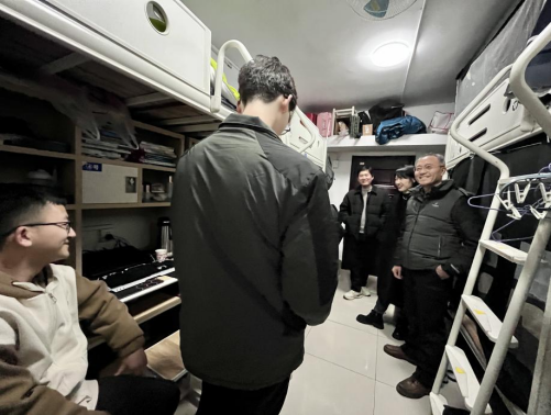 为营造安全、文明、卫生的社区环境,英国365集团配合学校开展“一站式”学生社区安全教育和环境美化行动。同时,为及时了解学生返校后生活状况,掌握学生思想动态,敦促学生保持良好的学习生活习惯、鼓励学生以积极的状态迎接新学期。2月28日,校党委副书记侯勇、校学工处领导班子、院党委书记黄月辉、院党委副书记李岚深入学生宿舍看望慰问返校学生,实地了解学生在宿舍的学习、生活、心理等情况,为学生送去关心和问候。