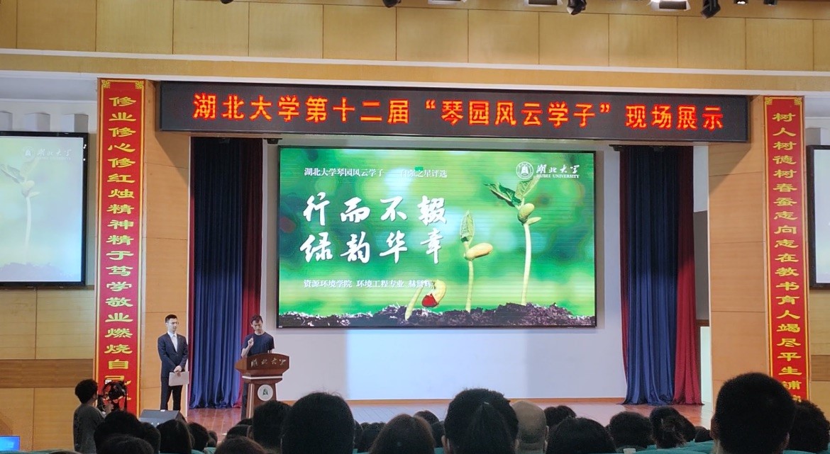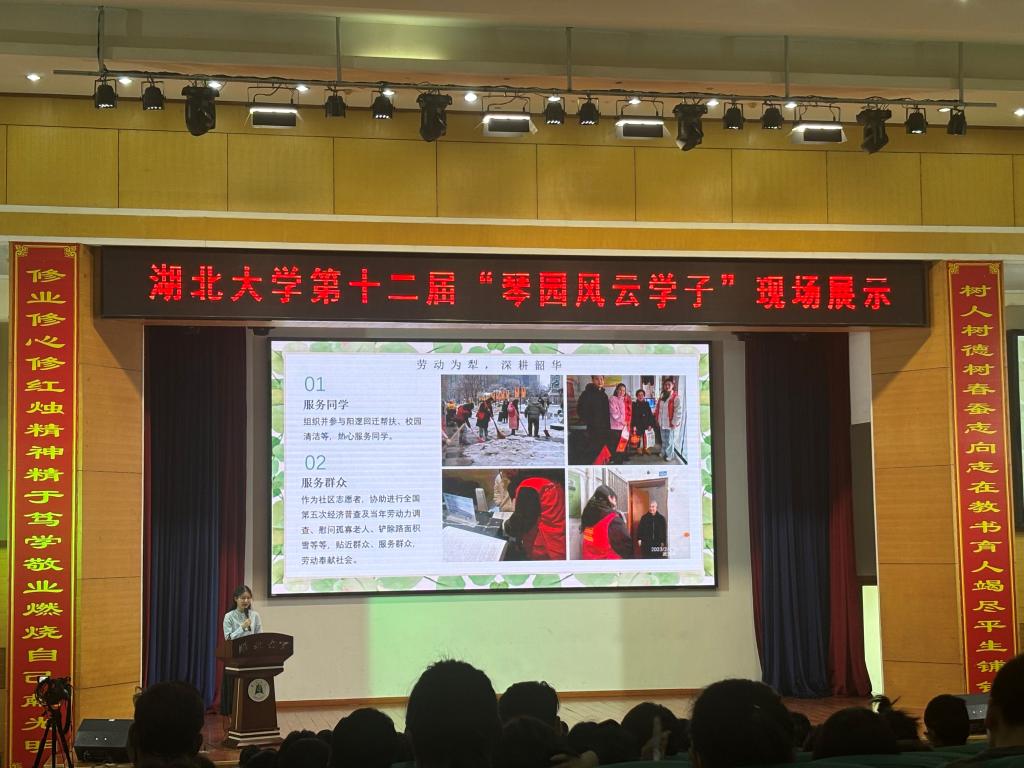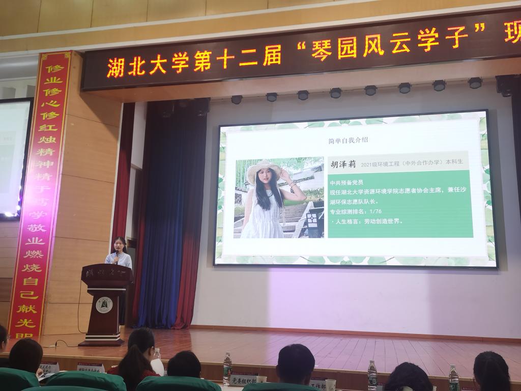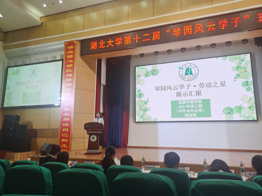 2021级环境工程(中外合作)专业胡泽莉同学以“劳动为犁,深耕韶华”为主题进行展示。她现任英国365集团志愿者协会主席、沙湖环保志愿队队长,多次参与志愿服务活动,不仅在志愿服务方面表现突出,学习成绩同样名列前茅,展现了资环学子风采。