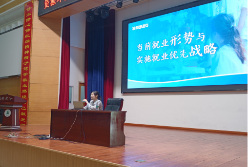 下午,马菲讲师以“认清形势,科学规划”以主题,以当今就业人数数据为先导,从“当今形势总体稳定”、“仍存在就业压力”、“确保就业优先”、“着力拓宽渠道”四个方面展开。资环学子在课上掌握不少就业知识,了解获取就业信息的途径。