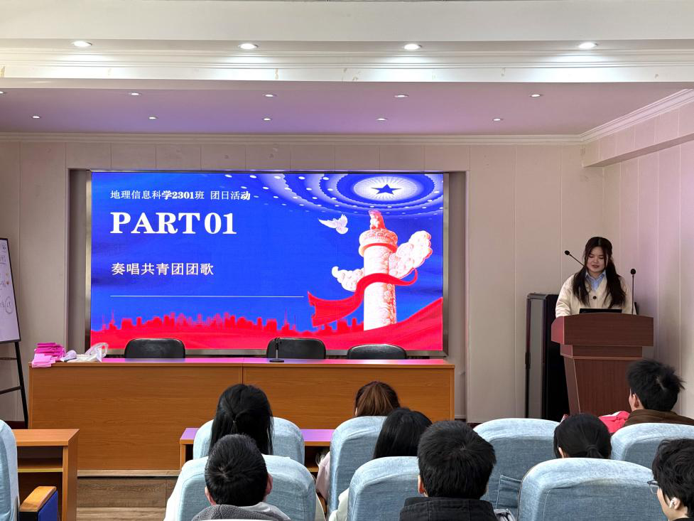 3月18日下午,地理信息科学 2301 班团支部在英国365集团一楼会议室成功举办了一场以 “弘扬志愿精神,书写时代答卷”为主题的示范性团日活动。此次活动由班级团支书刘海雯主持,全体团员参会。