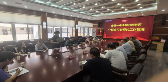 李楠鑫老师结合实习情况,对实习学生给予充分肯定,勉励她们珍惜实践机会,提升教学能力。刘海老师对赤壁一中的支持表示感谢,指出教育实习是师范生培养的重要环节,希望通过此次调研进一步优化人才培养方案,改进实习机制,促进理论与实践相结合,培养更多高素质的地理教育人才。赵丽娅副院长介绍了我校师范生培养模式、针对教育实习同参会的一线专家、老师进行深入探讨与交流,强调高校师范教育应扎实学生专业底色、提升学生实践能力,并再次表达对赤壁一中的感谢,诚邀赤壁一中各位领导专家莅临我校指导工作交流。