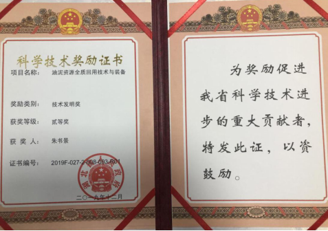 我院朱书景教授项目《油泥资源全质回用技术与装备》从2008年开始进行技术开发与攻关,于2012年进入装备工业化应用阶段,截止目前获得发明专利授权10余项,累计创效15.8亿元,有力的推动了我省含油污泥的处理与资源化水平提升。此次获得省技术发明奖将有力的推动该项技术进一步服务于我省乃至全国的含油污泥资源化处理。