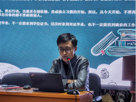 10月13日上午,学院党委副书记李明老师为新生做题为《我的大学,我的生活,我的蜕变——与2020级资环学院新生谈如何适应大学》的专题讲座。会上,李明老师从“为什么要上大学?”“上大学要做什么?”“如何正视自己的大学?”等问题引入,启发同学们思考从高中过渡到大学阶段应该怎样调整学习心态;怎样正确看待自己考取的学校及所学专业;怎样处理好学习与课外活动之间的关系。通过案例分析,李明老师为新生讲解了防诈骗相关知识;并引导同学们规划个人就业目标,思考在大学期间培养自己的核心竞争力。“大一新生要处理好四种关系,即过去与将来;课堂与课外;自由与自律;思想与行动。”讲座最后,李明老师勉励同学们要在“学、思、践、悟”中学习经验,收获成长,历练品性,成为更优秀的自己。