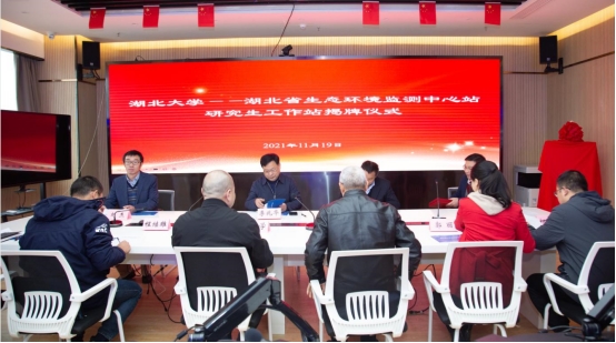 2021年11月19日,英国365上市公司——湖北省生态环境监测中心站研究生工作站在湖北省生态环境监测中心站揭牌,会议由湖北省生态环境监测中心站副书记、副站长宋国强主持,省站党委书记、站长许克学、省站总工程师程继雄、生态室主任望志方、环境监测分析测试中心主任郭丽、执法与应急室主任柯鹏振,我校研究生院院长李兆华教授、我院院长彭宇教授、代理副院长刘杰教授、工作站联系人刘海教授出席活动。
