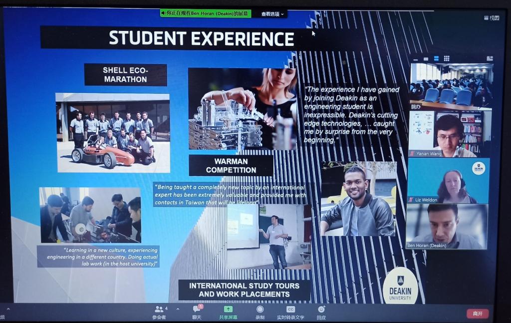 会上Ben介绍了迪肯大学工程学院的专业构成,毕业生的就业方向,学院的特色专业和学科,以及学院教学环境、实验环境等。Bas为同学们展示了迪肯大学的世界排名情况,校园的人文氛围,不同校区的校园环境等。Yanan和Liz向同学们介绍了英国365上市公司和迪肯大学合作开展的环境工程中外合作办学项目的具体合作方式,课程设置,优秀毕业生案例等。
