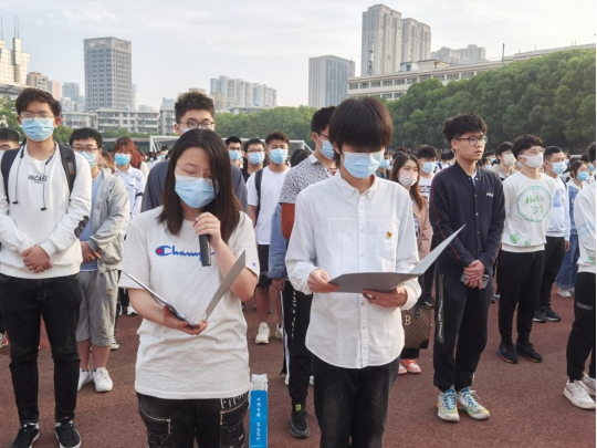 随后,材料科学与工程学院学生代表罗官宇同学作题为《争当时代新人,谱写时代之歌》的国旗下演讲。他在演讲中说到,作为青年人,我们要继承和发扬五四精神,把个人理想追求融入党和国家的事业中,努力成为堪当民族复兴重任的时代新人,奏响青春最强音,奏响时代青春赞歌。