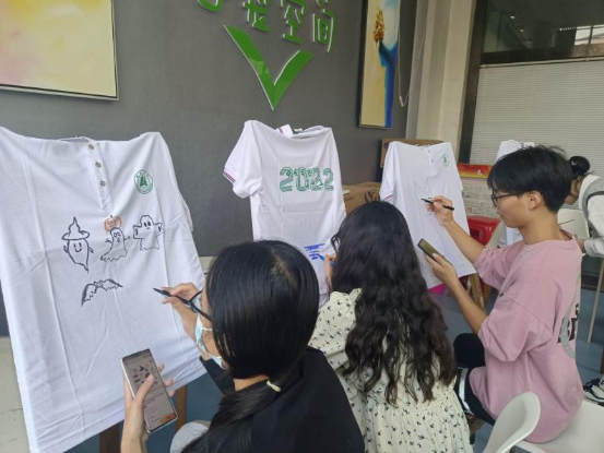 11月9日,芯宠辅导站志愿队在我院二楼“芯宠空间”活动室组织举办了“T恤涂鸦”活动,学院党委副书记李岚老师、生态学副教授杨予静老师、团委书记邓琪老师和辅导员韩鹏振老师受邀参加。