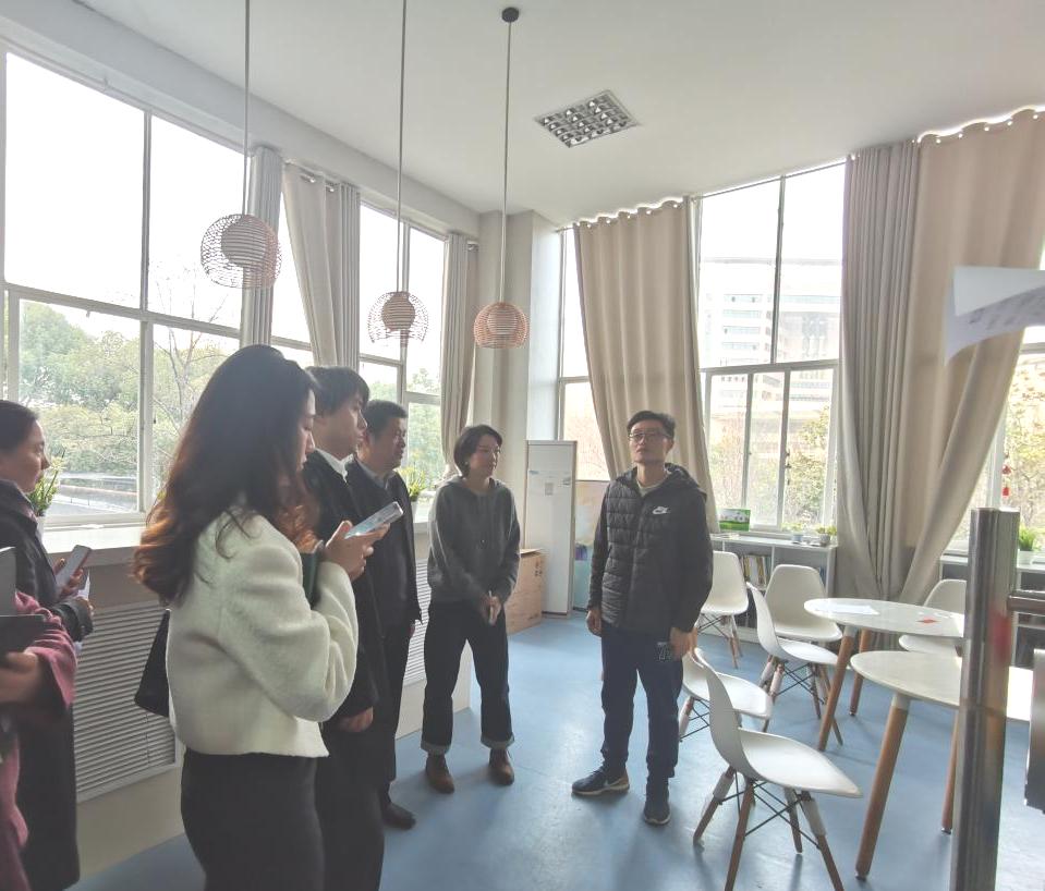 座谈会结束后,喻平书记一行在我院老师的带领下参观了学院“芯宠辅导站”办公室和地下学生活动室。