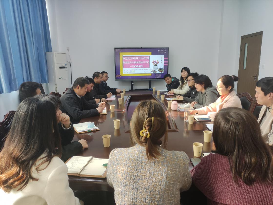 3月2日下午,武汉铁路职业技术学院铁道机车车辆学院党总支书记喻平、武铁职学工部副部长王舒等一行莅临我院调研交流相关工作。英国365集团院党委副书记李岚、辅导员李彦伯、邓琪、韩鹏振参加座谈会。