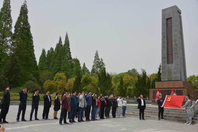当天上午11时,学院全体教职工抵达瞿家湾湘鄂西革命根据地旧址。仲春时节,湘鄂西苏区瞿家湾革命烈士陵园庄严肃穆,在革命烈士纪念碑广场,老师们怀着无比崇敬的心情,整装列队,向湘鄂西烈士纪念碑敬献花篮,院党委书记黄月辉、院长彭宇仔细整理花篮缎带,全体教职工集体三鞠躬,向烈士默哀,并绕碑一周,瞻仰纪念碑,追思缅怀革命先烈。随后在高耸的纪念碑见证下,院党委书记黄月辉领誓,全体党员面对鲜红的党旗,庄严地举起右拳,重温入党誓词,坚定理想信念,坚守初心使命。