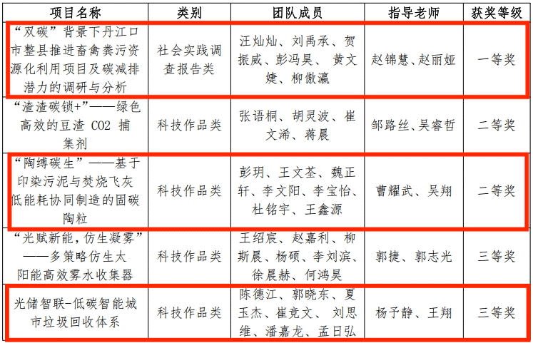 决赛现场,我院各参赛团队紧扣项目背景、技术突破等重点内容进行汇报。经过激烈的角逐,《“双碳”背景下丹江口市整县推进畜禽粪污资源化利用项目及碳减排潜力的调研与分析》项目获得一等奖,《“陶缚碳生”——基于印染污泥与焚烧飞灰低能耗协同制造的固碳陶粒》项目获得二等奖,《光储智联—低碳智能城市垃圾回收体系》项目获得三等奖。