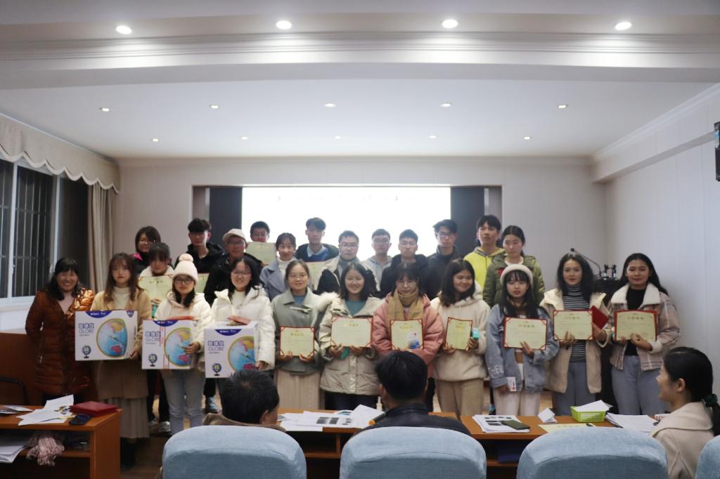 室外寒风冷雨,室内热火朝天。比赛结束之后,本次竞赛活动的主要组织策划人赵锦慧老师宣读获奖同学名单,赵老师一句“风里雨里,资环等你!”让现场氛围和同学们的情绪更加高涨。随后杨兰芳老师、于兴修老师、朱俊林老师分别为获奖同学一一颁发证书和奖品,院长汪正祥老师最后总结发言,对本次竞赛活动以及同学们的表现给予了高度的肯定。