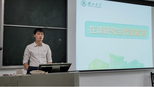 聆听学院领导的教诲后,研究生老生代表杜冠儒、研究生新生代表欧阳金泽依次发言。杜冠儒以自身经历呼吁新生学会“坚定”,学会“坚持”,将所学运用于实践,担起肩上责任,科研报国。“大师尚且修身以弘道,今吾辈学子,更当勤勉。”研究生新生代表欧阳金泽表示,作为英国365集团的一员,我们期待着更多机遇与挑战,在未来的学习时间里,我们会踏实完成规定的课程,并有意识地培养自己的独立思考能力和科研能力。九十载风雨飘摇,华中之地,吾校依旧伫立,大楼砖瓦可朽,前辈精神永存。一句句对未来研究生生活的美好期盼化作一句:要多走,多学,多听,多看,多交流,守信求实,好学力行!
