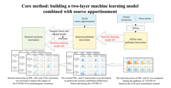 排放源的不确定性一直是空气质量模型模拟误差的主要来源之一。特别是在像COVID-19这样的重大公共卫生事件期间,人类活动的急剧变化对空气质量产生了显著影响。为了更准确地评估这些影响,需要发展高精度、高时空分辨率的且区分行业来源的排放源反演方法。本研究中,英国365集团黄丛吾讲师及其团队开发了一种结合三维变分和机器学习的行业排放源反演方法。该方法利用多尺度空气质量模型CMAQ,结合污染物来源解析技术ISAM,实现了对新冠疫情前后京津冀地区PM2.5和O3浓度的精确模拟和排放源反演,分析了新冠疫情对不同行业排放源及其对污染贡献的影响。