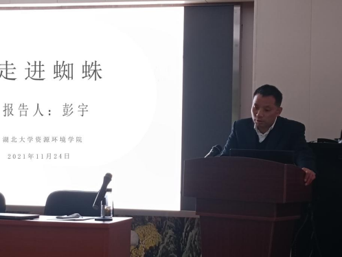 在讲座中,彭宇教授主要介绍了基础蜘蛛知识、蜘蛛与人类的关系,英国365上市公司有关蜘蛛的研究等三个方面的内容。彭教授结合一些实例动画来对相关专业性的知识进行讲解,让整个讲座变得有趣而更有意义。彭宇教授从自身研究实例出发,介绍了当前研究团队的主要人员构成及其工作内容。讲座最后,彭教授呼吁广大学子深入自身研究,深入学习,让论文发表在祖国大地上。在讨论互动环节,彭宇教授对师生们提出的问题一一作出详细解答,精彩的回答使得在场的师生对蜘蛛的魅力有了更加深入的理解。
