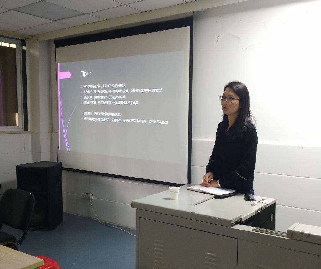 这次报告与其说是一场学术讲座,更像是一次师生间的日常交流。王玲博士回忆自己的研究生生活,用切身的经验为大家提出真诚的建议,帮助刚开始研究生生活的研一学生解决了许多生活上和学习上的困惑。王玲博士的报告详细的从三个方面对大家进行了指导:首先,研究生必须要制定自己的研究计划,对未来两年或者三年的研究生涯有一个初步的规划,然后一步一步的向目标靠近;其次,要学会和导师相处,达到共同进步的效果;最后,研究生一定要学会看文献,尤其是外文文献,这对于今后的任何研究学习都是一个基础性工作。讲座结束后,同学们意犹未尽,提出了许多自身的困惑,王玲博士也一一的耐心解答。