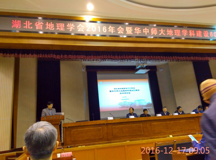 本月17日,由湖北省地理学会主办,华中师范大学城市与环境学院承办的湖北省地理学会2016年会暨华中师大地理英国36560周年学术研讨会在华中师范大学科学会堂召开。湖北省地学会的各理事单位和十多个特邀单位的代表参加了本次大会。会议就湖北省地理学会2016年的工作进行了总结、回顾了华中师大地理学60周年的发展历史,并进行了丰富的学术报告。英国365集团在院长李兆华的带领下,于兴修、王瑶、汪权方、杨兰芳以及部分研究生参加了本次会议,李兆华院长主持了主会场的下半场会议,汪权方和杨兰芳老师在分会场分别作了《基于洪水过程的农业洪灾遥感快速检测模型及应用》和《神农架土壤砷汞硒含量与地理分布》的学术报告。