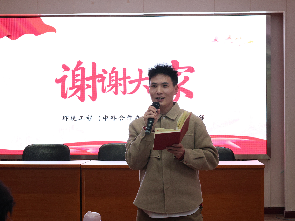 五四红旗团支部答辩环节,11个团支部依次围绕思想引领、组织建设、学风建设、志愿服务、社会实践等方面,全面汇报各支部的特色工作和突出成果。地理信息科学2201班团支部着重介绍其“愿‘为’愿‘劳’”的支部亮点,团支部年度总志愿时长增加400余小时,将近70%的团支部成员完成毕业所需志愿时长,展现出新时代青年的社会责任感和奉献精神。环境工程(中外合作办学)2201班团支部在组织建设方面表现亮眼,实现递交入党申请书率100%、入党积极分子考试通过率90%的优异成绩,充分彰显基层团组织在思想引领方面的扎实成效。各团支部的精彩展示,生动呈现我院共青团工作蓬勃发展的良好态势。