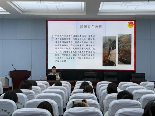 4月26日下午,历史文化学院辅导员程一老师为学员们作《青春心向党,建功新时代》专题报告,全面梳理了团史、团的性质、组织原则和基本任务、团的标识等基础团务知识,同时勉励新时代共青团员要增强“四个意识”、坚定“四个自信”、做到“两个维护”,在新时代新征程上奋力建功。