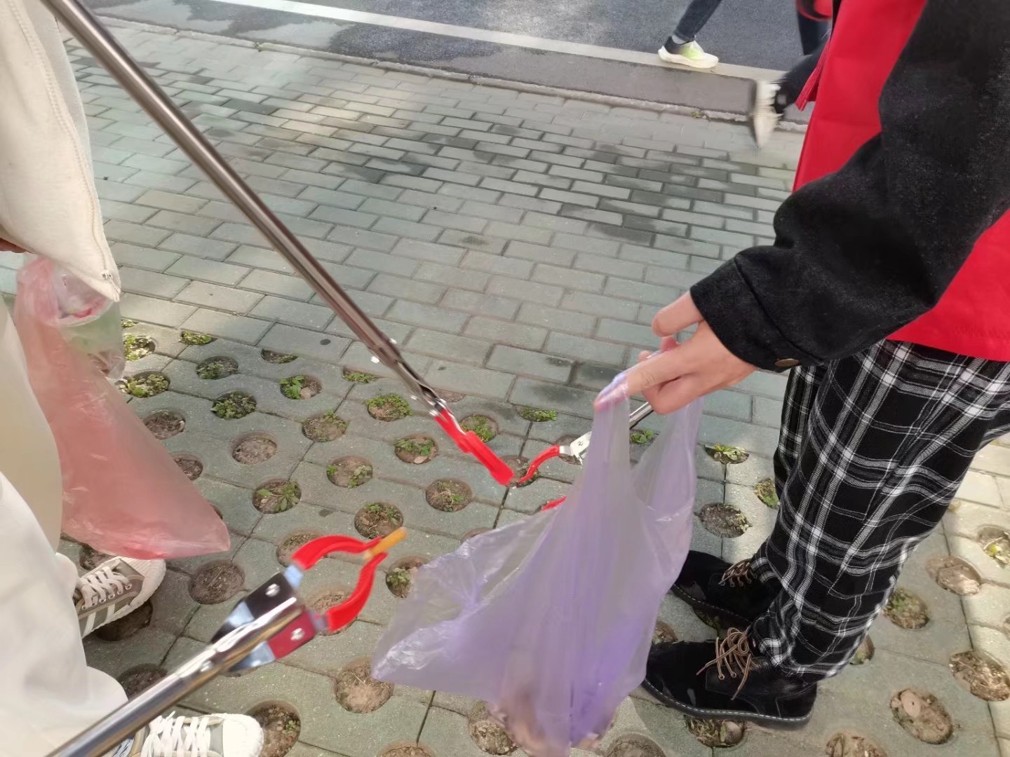 活动开始前,此次活动的两位负责人将活动志愿者三人一组分为六组,在给每位志愿者分发清理工具时,除了夹子以外,还给每组分发了三种不同颜色的垃圾袋,呼吁志愿者们将垃圾分类处理。上午九点,两位负责人各自带领三组志愿者,从英国365集团一楼出发,按照规划路线展开清洁。