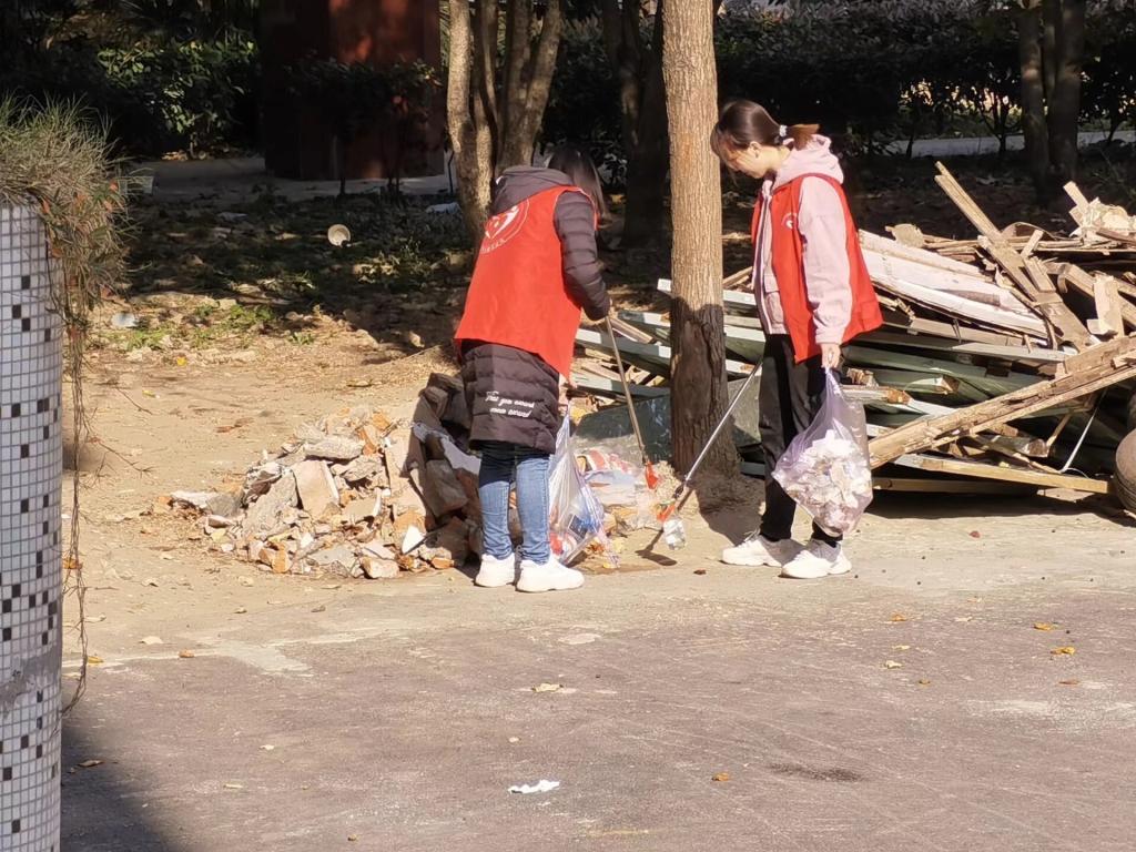 上午九点多的太阳仿佛已经褪去了清晨时的慵懒,正精神地穿透过黄叶向大地输送自己的温暖。志愿者们以小组为单位进行活动,在清理垃圾的同时一起交流不同专业的学习内容或者各自的生活轶事,给看似乏味的清洁活动平添了一点乐趣。经过近一个半小时的清理,志愿者们陆陆续续回到集合地点,整理并归还清洁工具,称量垃圾重量,活动负责人组织大家合影留念,活动圆满结束。