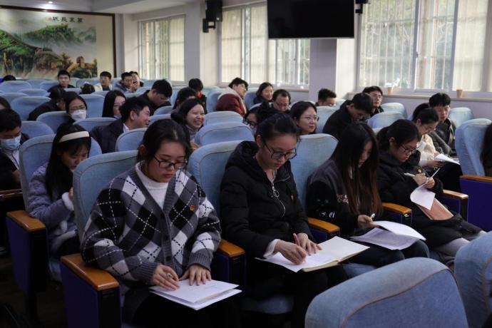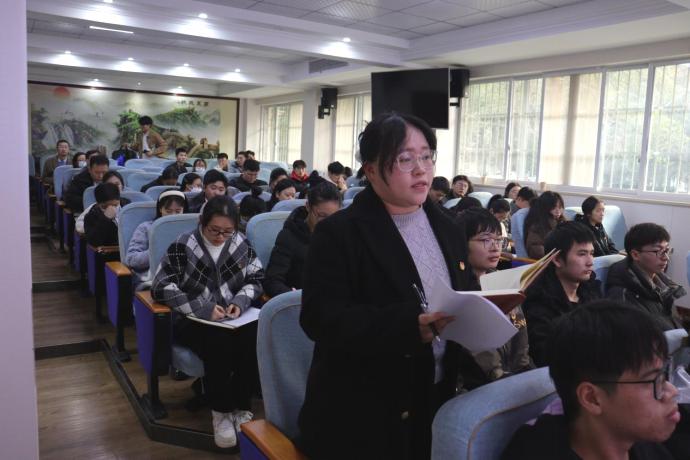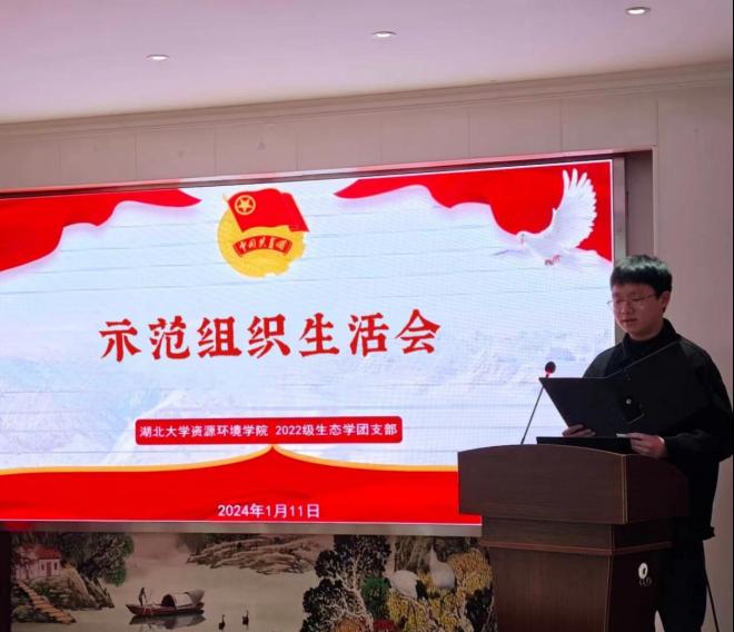 随后,团支部书记赖俊泽向全体与会领导、老师和团员青年做2023年度团支部团员和青年主题教育开展情况的工作汇报。2023年,在学校团委的统一领导和学院团委精心指导下,2022级生态学团支部围绕思想旗帜、坚强核心、强国复兴、挺膺担当等专题,采取多种学习形式,先后开展了“青春与祖国同行”“强国复兴担使命,实干奋进我先行”“挺膺担当肯奋斗,奋楫笃行向未来”等主题团日活动,团员和青年覆盖率、出勤率均达100%
